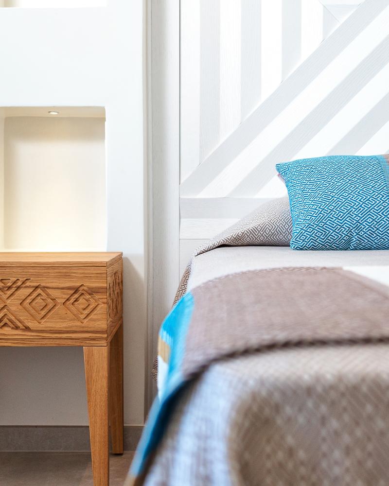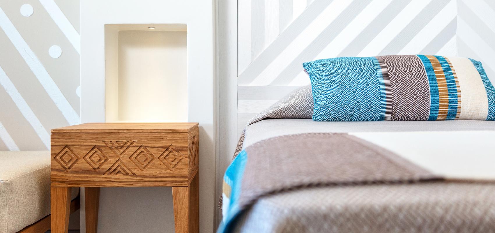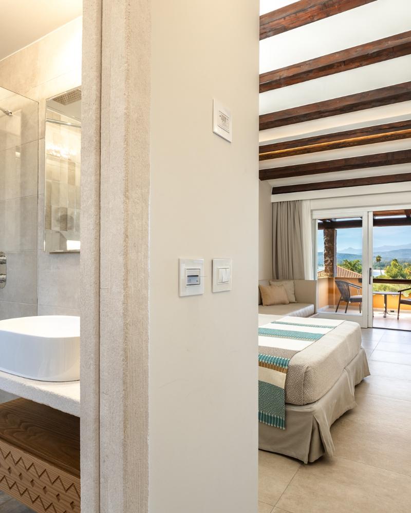 Le nuovissime camere Deluxe (completamente rinnovate nel 2022), traggono ispirazione dalla tradizione sarda, ripresa nelle linee e nei colori dei tessuti locali, negli intarsi del legno e del marmo lavorato di Orosei.