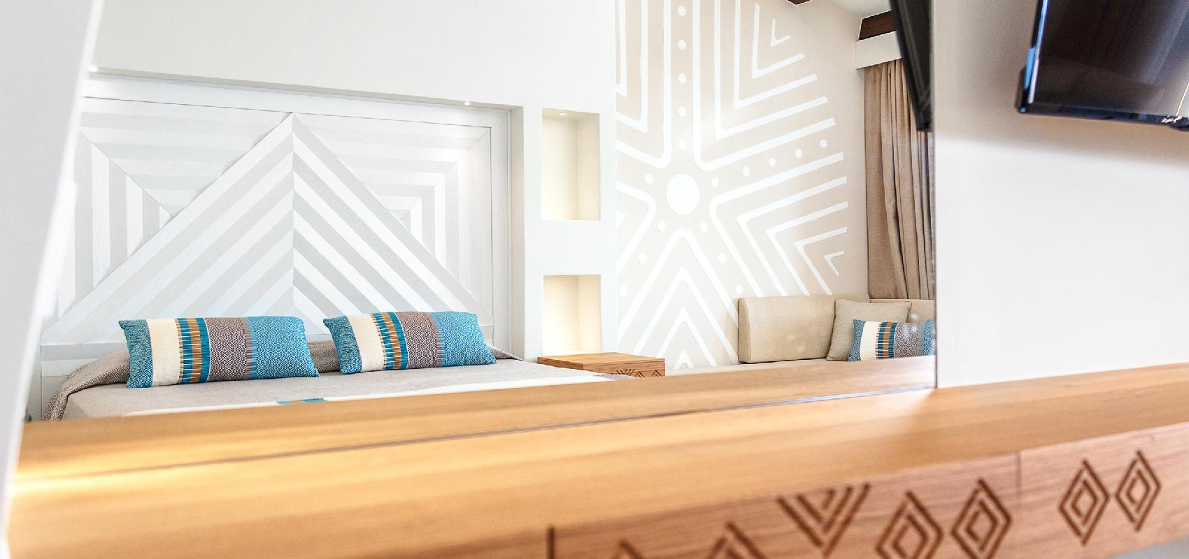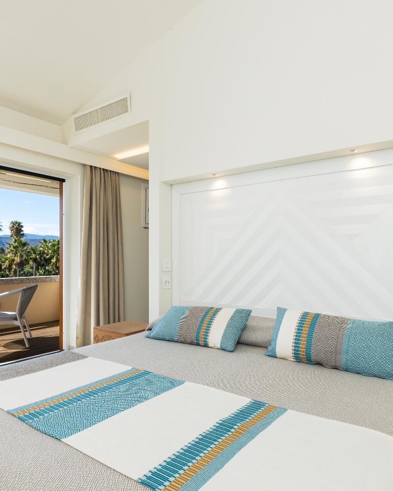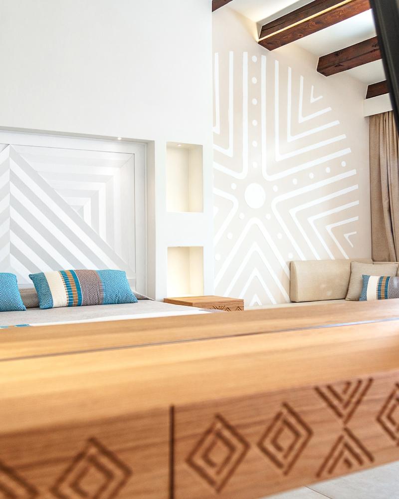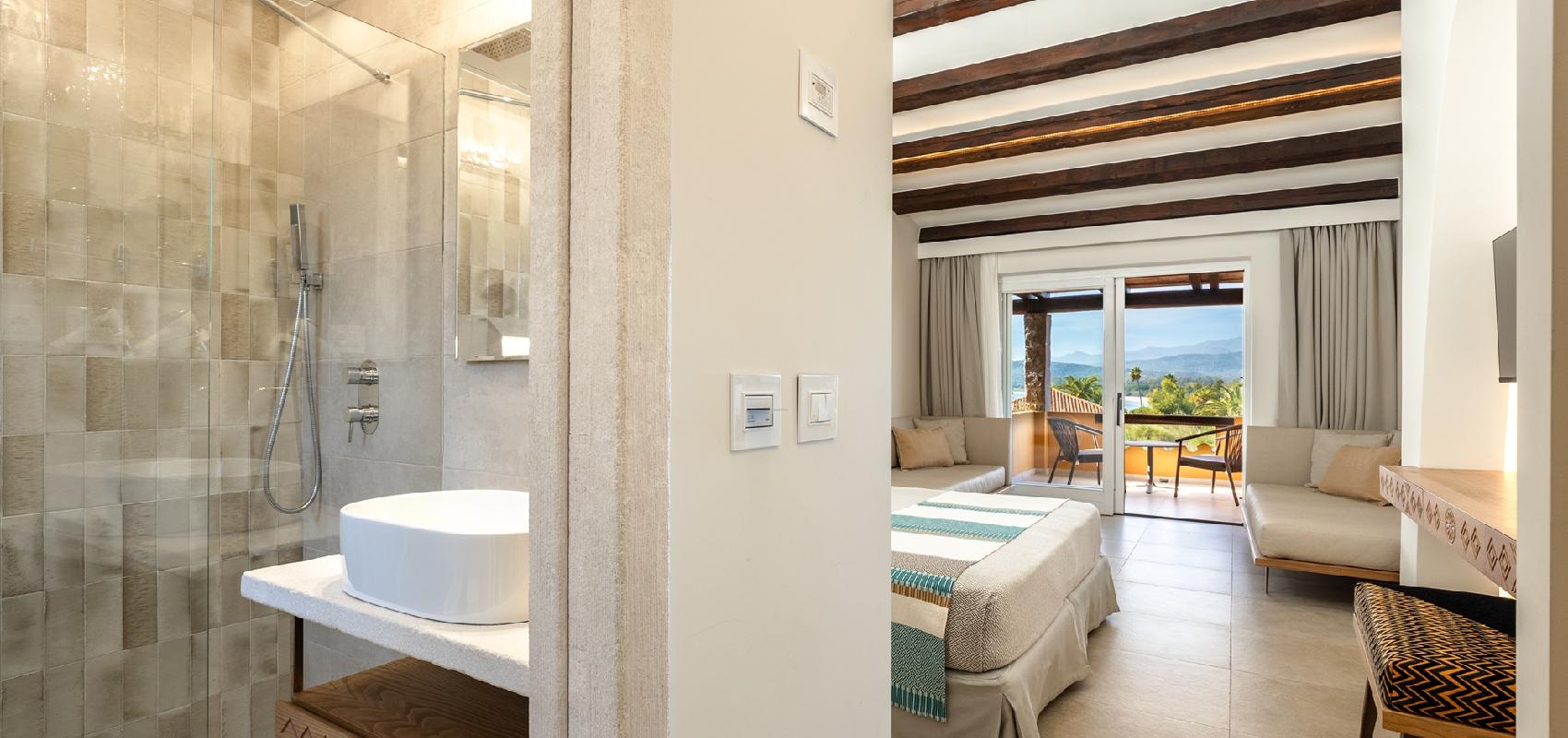 Le nuovissime camere Deluxe (completamente rinnovate nel 2022), traggono ispirazione dalla tradizione sarda, ripresa nelle linee e nei colori dei tessuti locali, negli intarsi del legno e del marmo lavorato di Orosei.