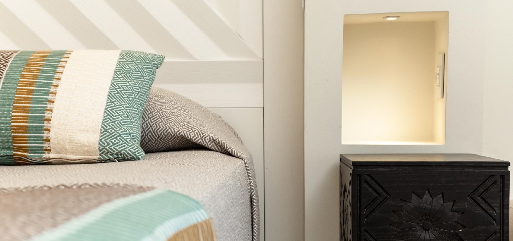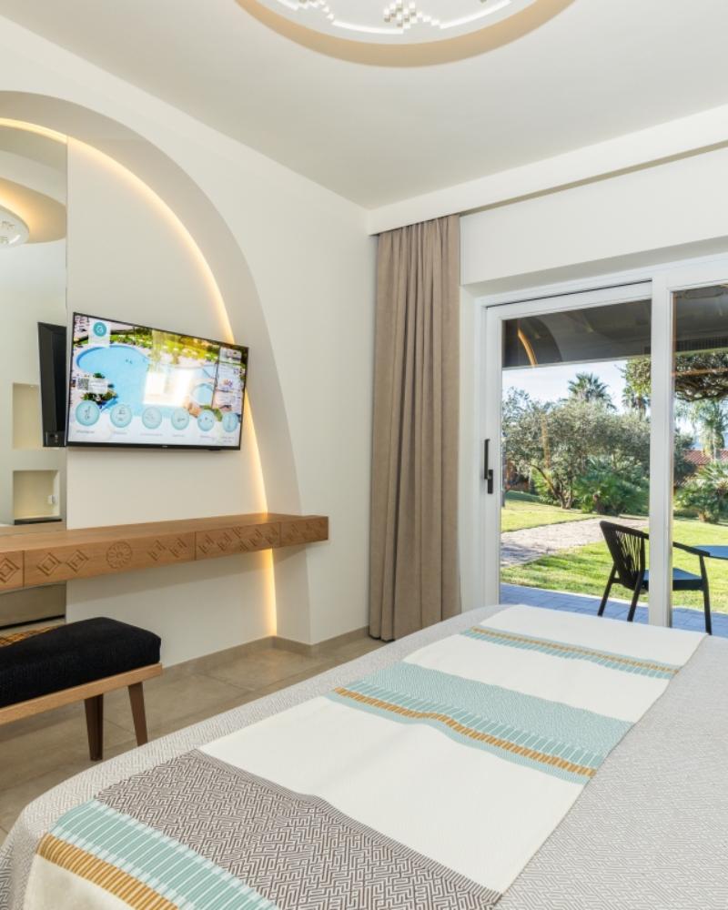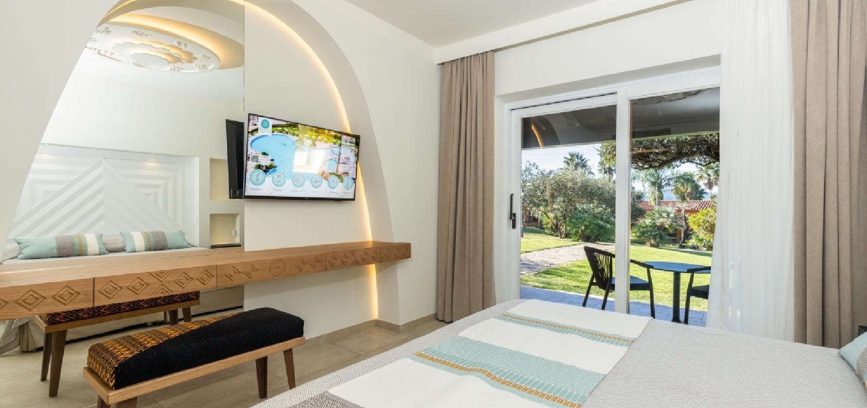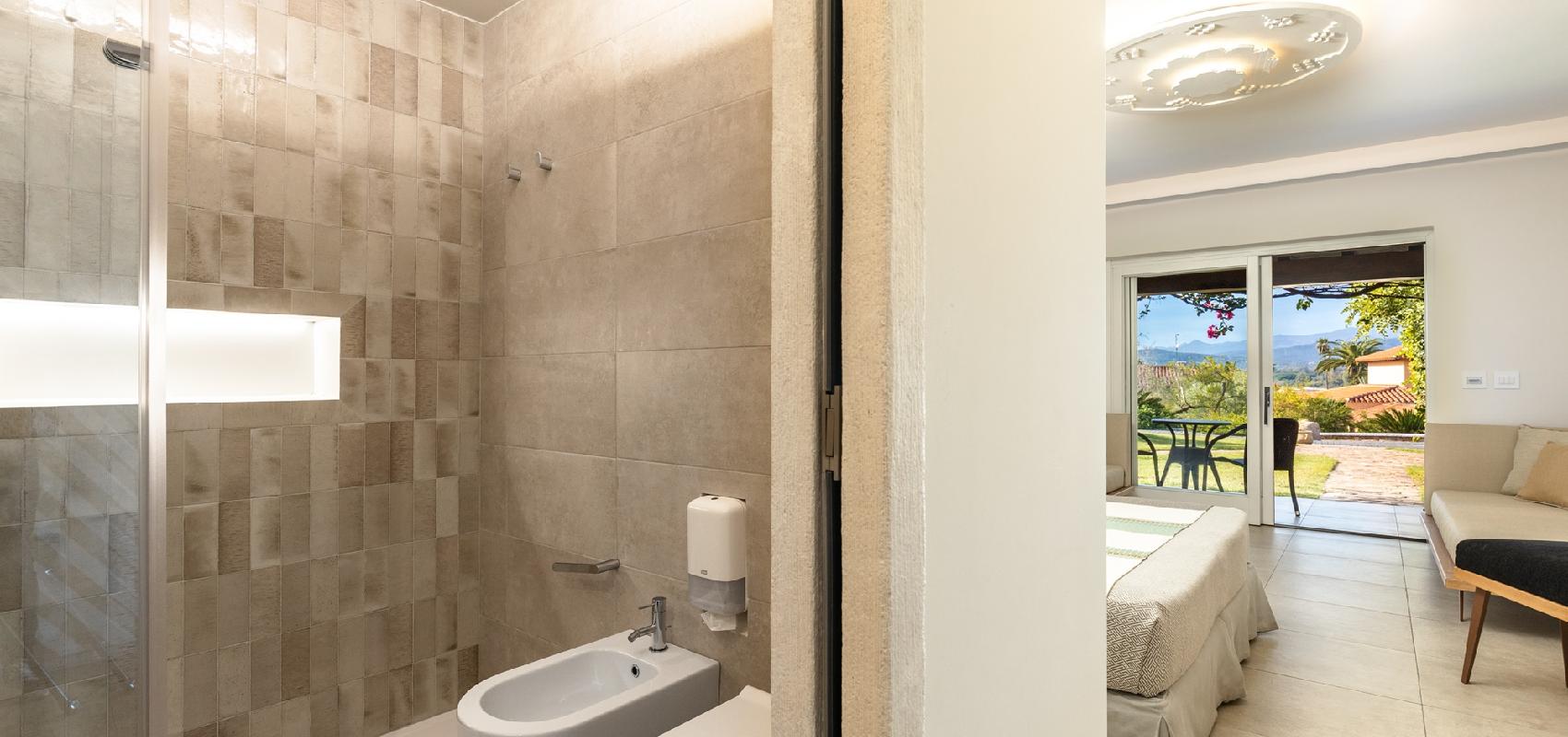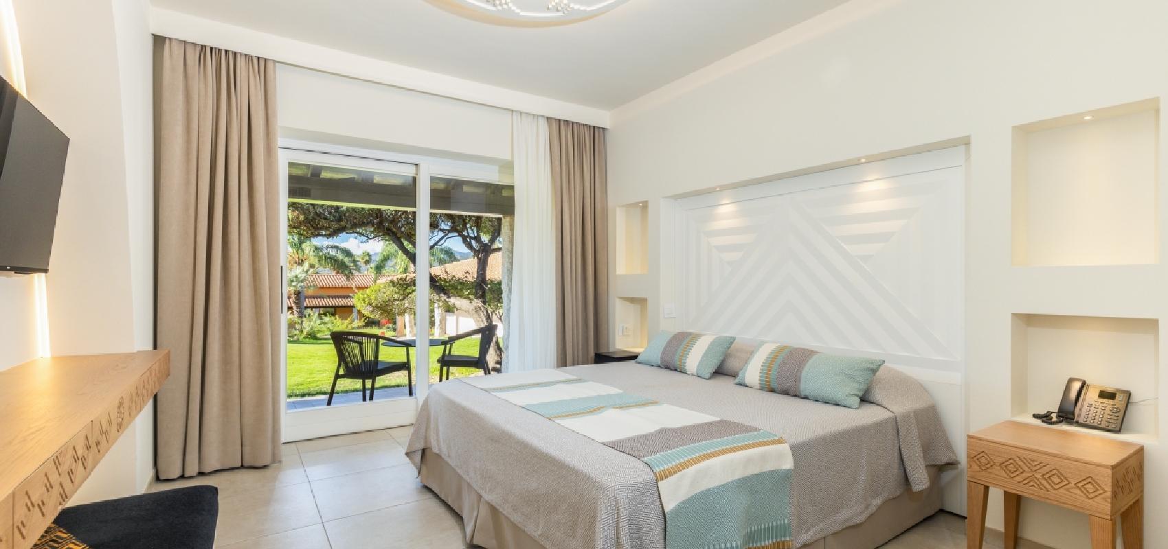 Novità 2022! le nuovissime camere Comfort Garden View traggono ispirazione dalla tradizione sarda, ripresa nelle linee e nei colori dei tessuti locali, negli intarsi del legno e del marmo lavorato di Orosei. Gli archi e le sinuose nicchie insieme ai colori pastello, richiamano le tipiche case del Mediterraneo e conferiscono all’ambiente un’atmosfera rilassante e accogliente. Le camere Comfort Garden View sono tutte situate al piano terra, a 200 metri dalla spiaggia. Dal patio attrezzato con tavolino e sedute, vi potrete rilassare a leggere un libro, godendo della vista sui nostri giardini.